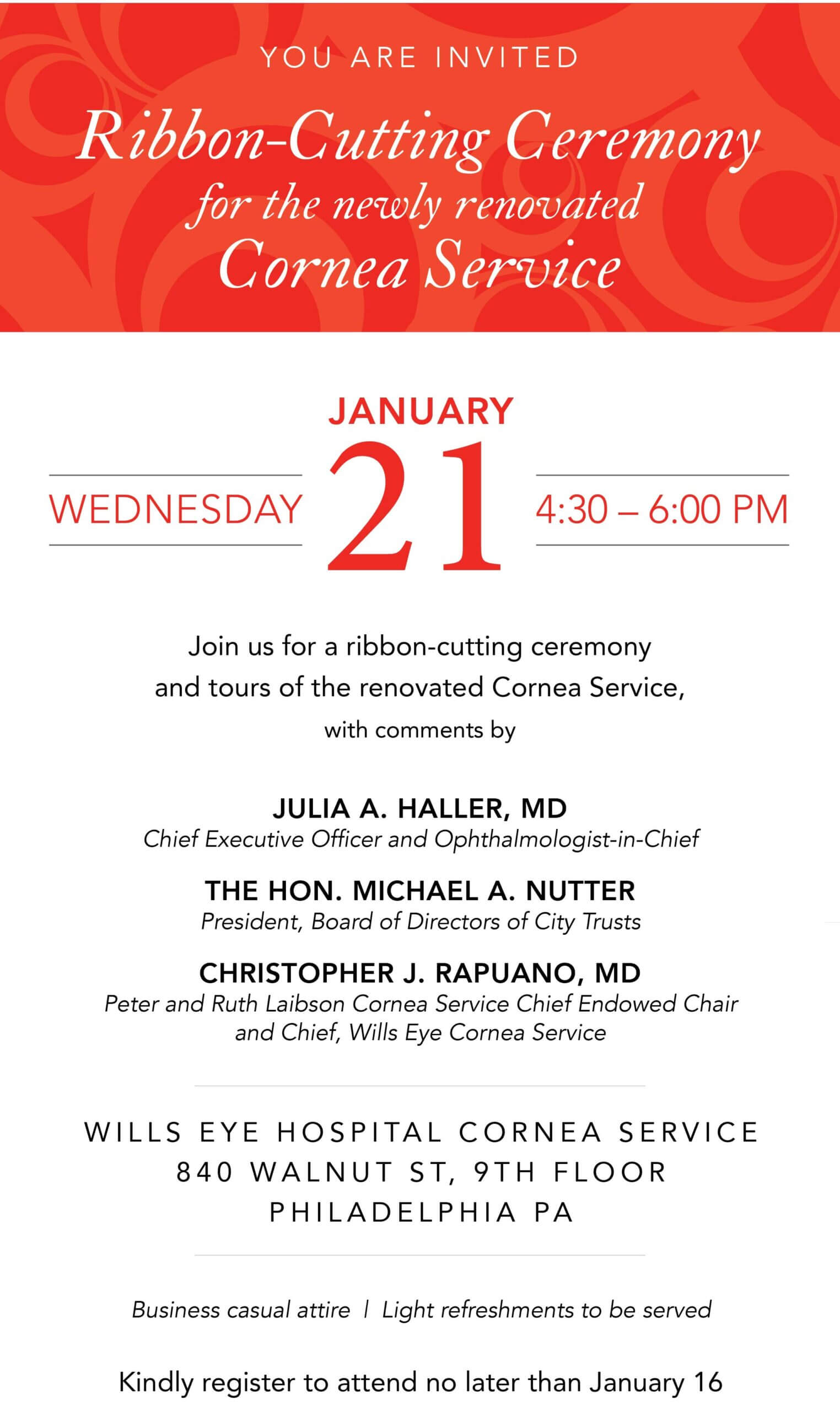 We hope you will join us as we celebrate this exciting milestone for the Cornea Service and for the thousands of patients who rely on Wills Eye for exceptional cornea care!